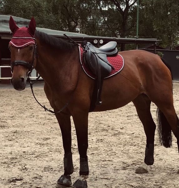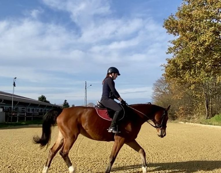 Westfalen-Stute „Bella“ - Brav, vielseitig und absolut verlässlich - Ein Herzenspferd sucht neuen Wirkungskreis! Zum Verkauf steht meine 2009 geborene Westfalen-Stute „La Bella Luna“ - Ein echtes Verlasspferd mit Herz, Verstand und vielseitiger Erfahrung. Sie überzeugt durch ihren einwandfreien Charakter, ihre Unerschrockenheit und ihre Bereitschaft, stets mit dem Reiter zusammenzuarbeiten. Bella ist absolut klar im Kopf und brav im Umgang. Sie lässt sich in der Halle oder auf dem Platz konzentriert reiten und will ihrem Reiter immer alles Recht machen. Sie geht alleine, zu zweit oder in größeren Gruppen ins Gelände. An hinterer Stelle kann sie hierbei schonmal etwas „spritzig“ werden, aber niemals kopflos oder unartig. Auch auf Gelände-Lehrgängen zeigte sie sich immer mutig und unerschrocken. Unarten wie „Bocken“, „Steigen“ oder Ähnliches kennt sie nicht und lässt sich auch von Kindern und Reitanfängern problemlos händeln und reiten. In den Jahren bei mir durfte Bella etwas Turnierluft schnuppern und wurde in Spring- und Dressurprüfungen bis zur Klasse A** vorgestellt. Hier konnte sie auch die ein oder andere Schleife ergattern. Sie geht brav auf den Hänger und zeigte sich immer unerschrocken - Ganz egal, wo wir unterwegs waren. Bella ist außerdem eingetragene Zuchtstute und hatte bereits ein Fohlen. Deshalb und aufgrund ihres tollen Charakters und ihrer vielseitigen Veranlagung ist sie auch für die Zucht interessant. Bella ist regelmäßig geimpft und entwurmt. Die Zähne wurden gerade erst kontrolliert und die Impfungen aufgefrischt. Sie ist schmiedefromm und ist aktuell vorne und hinten beschlagen. Bei zu hoher Staubbelastung bekommt sie Husten, was wir durch die Umstellung auf Späne sowie durch täglichen Weide- oder Paddockgang sehr gut im Griff haben. Im alltäglichen Umgang und im Training zeigt sie seitdem keinerlei Einschränkungen. Sie steht aktuell tagsüber draußen und nachts in der Box, kennt aber auch andere Haltungsformen wie beispielsweise Offenstallhaltung. Ich wünsche mir für Bella einen liebevollen Endplatz, an dem sie weiterhin viel Freude bereiten darf - Ob als verlässliche Partnerin für ambitionierte Freizeitreiter, als Familienpferd oder für Wiedereinsteiger. Aufgrund zeitlicher Einschränkungen durch Familienzuwachs und Studium kann ich ihr leider nicht mehr in dem Maße gerecht werden, welches sie verdient hat. Der Preis ist VB. Bei Bedarf kann diverses Zubehör miterworben werden.