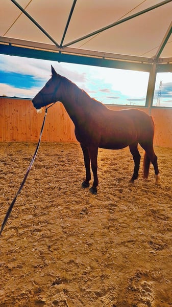 Westfaalse merrie, geboren in 2009, 1,65 m groot, zoekt een definitieve plek als recreatiepaard Soms veranderen levensomstandigheden, en daarom zoek ik een geweldig eindbestemming voor mijn fantastische merrie. Ze rijdt bij ons uitsluitend als recreatiepaard, kent bosritten en wordt als St. Martin paard ingezet. Met haar kunnen lange afstanden in het terrein worden afgelegd, zowel alleen als in een groep. Door haar afstamming, "Pilot", kan ze soms wat temperamentvoller zijn in het terrein, maar altijd goed te hanteren. Geen bokken, steigeren of doorzetten, maar je moet wel met haar temperament kunnen omgaan. Ze is geen beginners- of herstarterspaard en ook geen kinderpaard. Voor meer informatie hoor ik graag telefonisch.