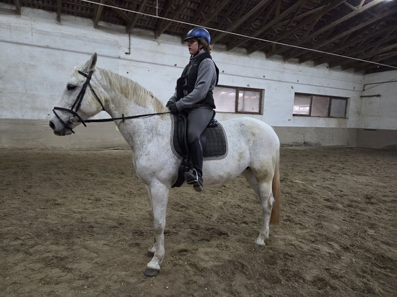 This nice mare has a great character and is very well-behaved. She has competed in show jumping. The veterinary statement indicates she is conditionally rideable. No X-rays are available. She can be ridden out. Also suitable for breeding or as a companion due to her excellent pedigree. She is very herd-compatible. Please call or WhatsApp 0171 / 6533588 if interested. She deserves a good place, as she is truly well-mannered and easy to handle.