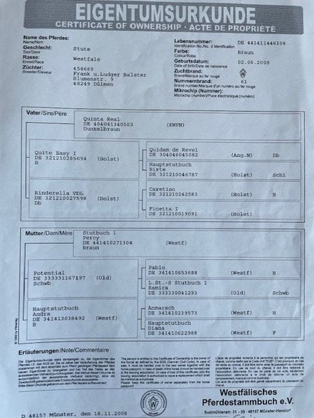 17-year-old brown mare, very sweet has been retired from sports (due to age-related lameness at the trot) Dressage & jumping up to L level successfully interesting for breeders due to her pedigree extremely kind, easy to shoe and load home before price - no sale to dealers