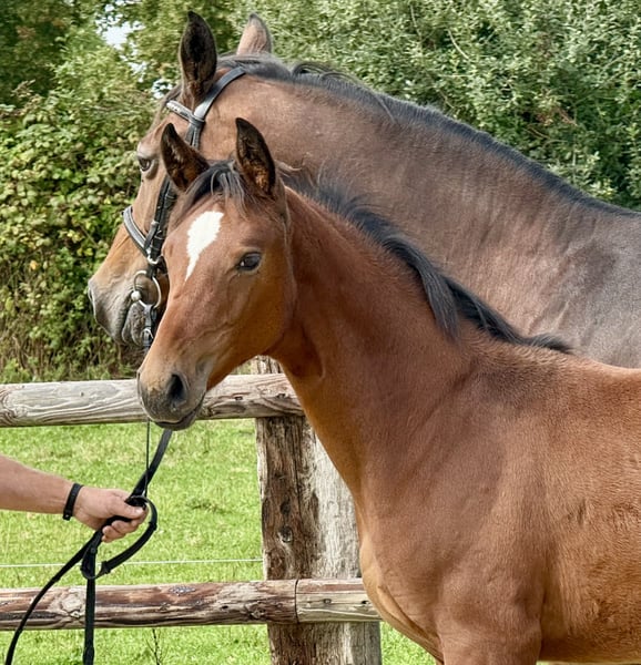 Dieses Stutfohlen überzeugt durch seine elegante Erscheinung und sein ausgeglichenes Wesen. Es zeigt bereits vielversprechende Ansätze für den gehobenen Dressursport. Vater ist der hochfrequentierte DIAMANTENGLANZ , der durch Höchstnoten in seinen Hengstleistungsprüfungen und im Turniersport überzeugte.