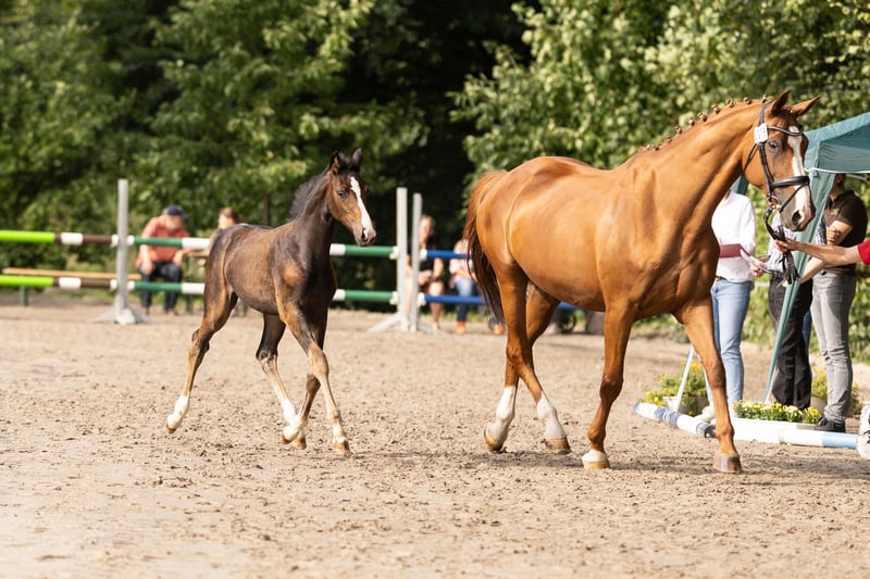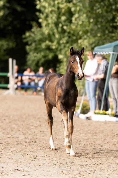 Zum Verkauf steht ein wunderschönes, bewegungsstarkes Stutfohlen, Jahrgang 2025, das bei der Stutenschau besonders hervorgehoben wurde. Abstammung: Diamantenglanz x Londontime. Das Exterieur lässt keine Wünsche offen. Ein edler Typ mit wunderschönem Gesicht, eleganten und leichtfüßigen Bewegungen sowie einer modernen, langbeinigen Erscheinung. Bestens für den Dressursport geeignet und ein vielversprechendes Nachwuchstalent.