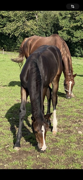 Callida impresses not only with her loving nature but also with her natural joy of movement. Videos of her gaits and playful behavior can be sent upon request. For sale is a special filly by Calida, sired by Cordynox. Born on May 16, 2025 Out of a mare by Captain Jack x Arcord II. The mother can be viewed with us and is distinguished by her excellent quality.