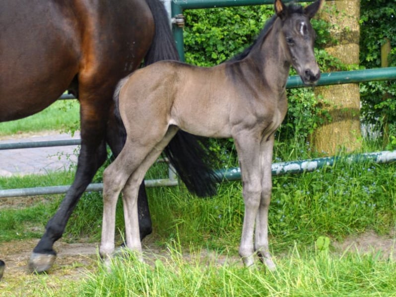 Sold If you are interested in a foal from this dam line, please feel free to contact us. Lorena is expecting a foal by GREAT EUROPE in 2026. Elli A tall, stunning, affectionate princess—truly a beauty you can hardly paint better. Everything about her is perfect, and her excellent interior was no surprise, knowing from the U.S. breeder circles that Extrem U.S. produces very friendly, well-balanced horses. We also know our Laurena, which I personally rode before breeding. We honestly did not expect Elli Extrem to have such an adorable doll-like head, and we are delighted—likely the future owner will be too. About her sire, EXTREM U.S.: - Pavo Cup, KWPN Stallion Performance Test, and HLP winner - No higher achievements are possible at this age Extreme U.S. carries the champion gene and passes it on. From his debut year, he sent a record seven offspring to the KWPN Foal Championship, including Tamina Delin BS, the champion foal, and Thor F, the bronze medalist and best colt in Ermelo, NL. He has repeatedly produced top-priced foals at elite auctions such as Prinsjesdag/NL, Borculo/NL, Stal Brouwer/NL, and DSP Big Chance Auction. In 2023, Extreme U.S. won the Pavo Cup under his rider Renate van Uytert-van Vliet/NL, earning a dream score of 10 from foreign rider Daniel Bachmann Andersen/DEN. He dominated the prestigious KWPN Stallion Competition, scoring 89.2 points in Kronenberg/NL and 89 points in Ermelo/NL. In 2024, he placed fifth in the final standings of the five-year-old Pavo Cup. His HLP in 2022 concluded with an overall score of 89 points (9.0 for trot, walk, elasticity, balance, rideability, and talent; 8.5 for canter). About her dam, Lorena by Lauries Crusador: Lorena, a mare as beautiful as one could imagine, I bought six years ago as a riding horse. As an experienced rider, I was looking for a calm, friendly horse that would never (!) buck. Lola was just broken in at the time, and although buying an inexperienced young horse was a bit crazy, that’s how some eventers are sometimes... The lovely Lola, as I call her, has fulfilled all my wishes. She was always well-behaved under the rider, never bucked under saddle, and really tried hard for me—a somewhat nervous, older lady. She even went on an eventing clinic with me, despite my fears and her lack of eventing experience. To keep it brief: She is not only stunning but also possesses high rideability. Anyone reading her dam line will understand that there is a genetic potential for rideability. This wonderful mare has gone on trail rides alone and with me, participated in eventing clinics, and gone on rides in the Eifel, Sauerland, and North Sea regions—all without ever disappointing me. Dressage lessons with her were also enjoyable because she combines high rideability with sensitivity. She is now expecting her third foal. Her first foal by Dimaggio was sired by Axel Windeler, and shortly after weaned, I bought Lola. In 2024, she had a very good colt by FOLLOW HIM SCHÖNWEIDE, which we sold to excellent hands in Switzerland. Lorena herself has a very good dam line tracing back to the stallion Salut, which is why jumping is also part of her pedigree. Dam Line: Lorena - Leonidas v. Lauries Crusador xx, DRE: S*-successful with Christoph Göb - Roccadinio v. Rock Brasiliano, DRE: M**-successful with Annika Koch - Duke de Niro v. De Niro, Stallion, DRE: International Grand Prix Special successful with Maria Gonzales, USA - Bellevue v. Barclay, VA 2014, DRE: M*-successful with Vivien Pendias - World Girls Magic v. White Star, DRE: M*-successful with Bernd Wichert - FRH Leoberta v. Laptop, Team Gold at the German Championships, eventing—Young Riders 2010 with Tomke Ehlers - Quapitola de Beaufour v. Diamant De Semilly, SPR: International S****-successful with Tim Rieskamp Goedeking - Roy v. Rheingau, DRE: GP successful with Bärbel Eppinger What potential do we see in this beautiful foal, Elli Extrem? We believe she will later be a versatile riding horse suitable for all disciplines, including smaller show jumping or eventing, with a wonderfully balanced temperament and a whinny when you enter the stable. We estimate her height at around 170 cm. Her main strength, in our opinion, will be in dressage, where her high rideability—thanks to both her parents—will make riding easier for her rider. If you are interested in Elli Extrem, please feel free to call: 0176 10150910 Kati Budde