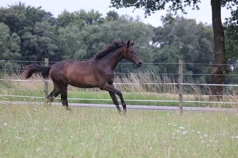 2-year-old mare, born June 2023, by BE MY DANCER (Benicio / Belissimo M / Vivaldi / Krack C / Ferragamo) out of PRINZENADEL by Peking-Landadel-Figaro. Sired by PLACIDO (Pik Bube - Graphit) and TIN ROCCO x FURIOSO II. The foal knows the ABC of horse handling. Great character, affectionate, and raised appropriately for her age. Currently approximately 1.59 meters. She will surely become a wonderful horse for the whole family. We can imagine her excelling in all disciplines of riding. 6.5🥕🥕 Postal code 46514 No video available. Please contact only via WhatsApp at 0172-7037909 to arrange a viewing. Serious inquiries only.