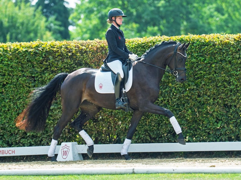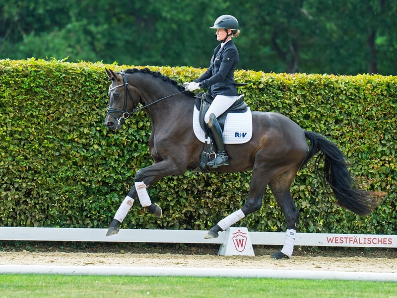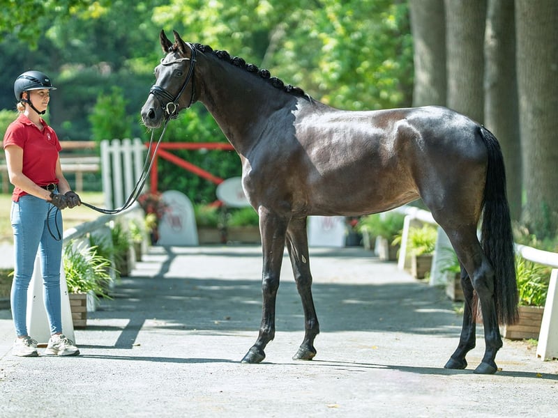 Wunderschöne, bewegungsstarke Tochter des Rittigkeitsvererbers For Dance. Mit hervorragender Grundausbildung und einem tollen Interieur reift mit For Fun ein tolles Damen- oder Jugendreitpferd heran. Zuchterfolge: StPr ZSP: 7.84 2. Generation Bes. Prämientöchter: StPr For Joy v. For Dance (Reservesiegerin Westf, Eliteschau´21, Westfalenchampionesse 2022 und 2023, DR S erfolgr.) Auktionspferde: Embolo v. Escamillo (Westf. Herbst-Auktion'22/590.000 €) Stutenstamm gekörte Hengste: Danzas v. De Niro (DR PSG/Inter I erfolgr.), Assalitore v Arpeggio (SPR int. 1,45 m erfolgr.), White Kiss v. White Star, Wildgraf v. Wilhelm Tell I Sportpferde: Charly 1184 v. Cornet Obolensky (SPR 1,40 m erfolgr.), Equalon v. Ehrentusch (SPR 1,30 m erfolgr.) Mutter: VbPr Sterni ZL: 6/5 ZSP: 7.98 Großmutter: StPr Dressed in Black ZSP: 8.28