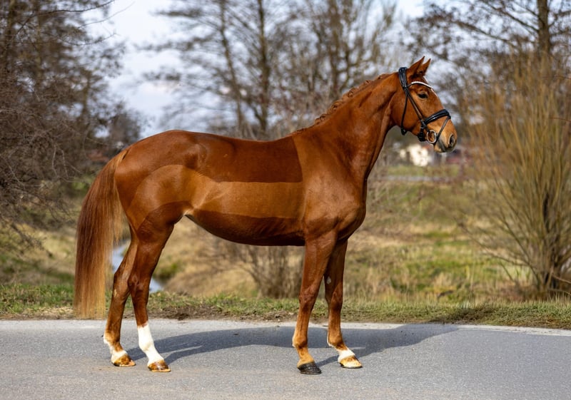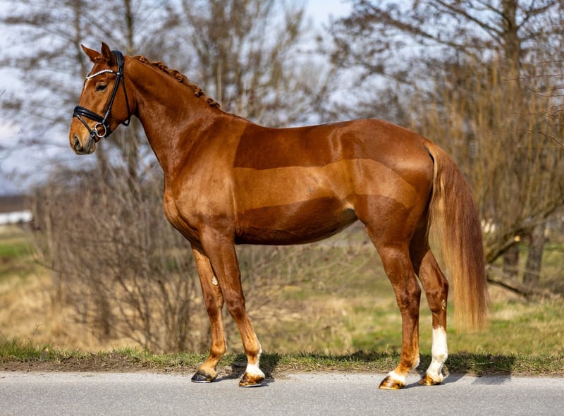 For sale is a 4-year-old chestnut mare standing at 15.7 hh, distinguished by her exceptionally sweet and uncomplicated nature. Despite her young age, she is remarkably well-behaved and reliable. She consistently strives to perform her tasks correctly and to the satisfaction of her rider, whether under saddle or in groundwork. It is clear that she wants to please. Under saddle, she is easy to handle, soft in the contact, comfortable to sit, and always attentive and eager to work. She thinks along, is willing to perform, and shows daily enjoyment in her work. Her compact size and honest character make her an excellent choice for less experienced riders or ambitious amateurs. At the same time, her good basic gaits and rideability provide a very solid foundation for riders who wish to further develop a young horse. A truly charming, spirited young horse with great potential. ⸻ IMPORTANT: The mare is shown barefoot in the video. With front shoes, she could probably present herself even more expressively from the front. We deliberately filmed her barefoot, as many buyers prefer this. ⸻ 📍 Location: Rosenheim 📞 Feel free to contact us by phone or WhatsApp 📧 Also reachable via email ❗ Please do not send inquiries via Messenger