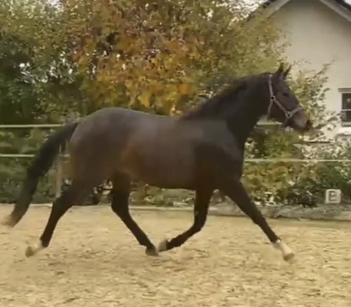 Nous proposons à la vente une jument Westphalienne talentueuse et affectueuse. Origine : Diamond Deluxe x Blickpunkt Cette jeune jument séduit non seulement par sa stature attrayante, mais aussi par son caractère charmant et sa volonté d'apprendre. Elle montre un grand potentiel en dressage et est prête à être développée par un cavalier expérimenté. Sa mère se distingue par son apparence, son caractère et sa montabilité ; son père possède une qualité de mouvement incroyable et un nombre remarquable de fils agréés. Pour toute question ou pour plus d'informations, n'hésitez pas à nous contacter !