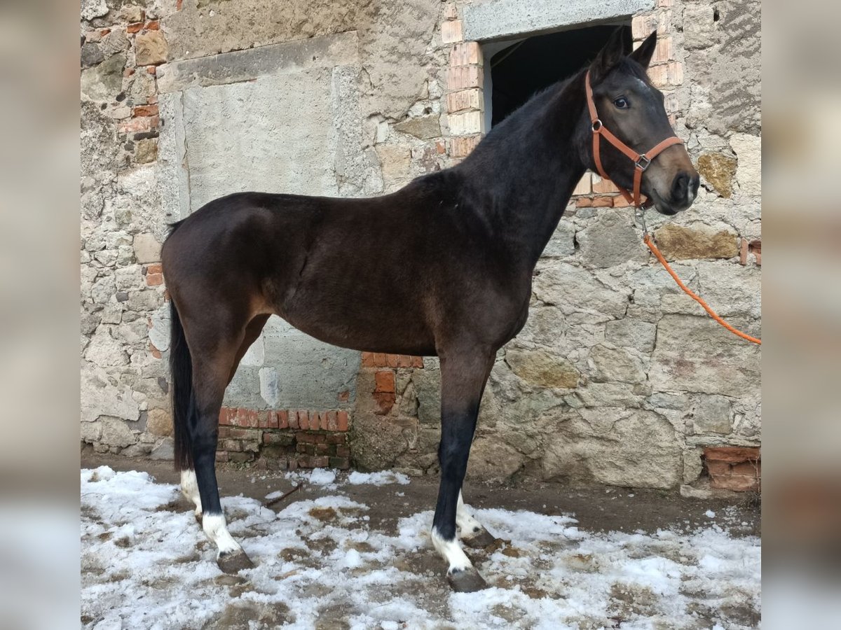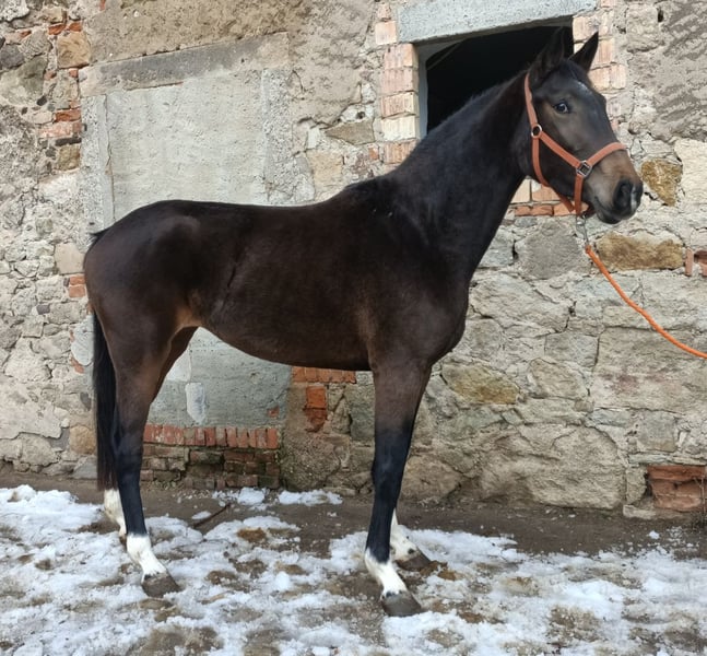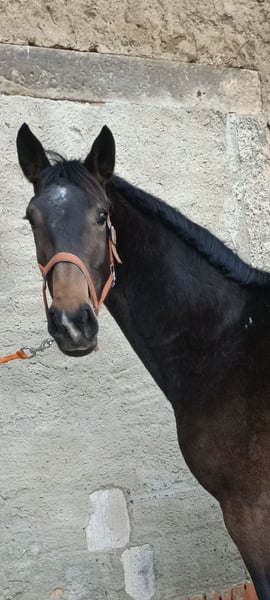 This lovely mare has had time to develop and is now beginning her career as an eventing horse. She combines everything one could wish for: solid paperwork, a dark coat, correct legs, an excellent temperament, and the engine in the right place, ensuring no compromises in movement quality. The owner is not experienced enough to handle a young horse of such quality and is possibly looking for a solidly ridden horse up to 10 years old, at least 1.60 m, or a breeding mare in foal for 2026, for exchange or trade. She lives here in a mixed herd, is mid-ranking, and has no vices. Trial riding is possible for €25 per person, as no riding tourism is desired. Sold on behalf of the owner. - AKU and transport can be arranged by prior agreement - X-ray certification is possible; costs to be covered by the buyer - Additional stabling, training, or joint lessons are available - Accessories can be purchased separately - Trace number available, international sale possible