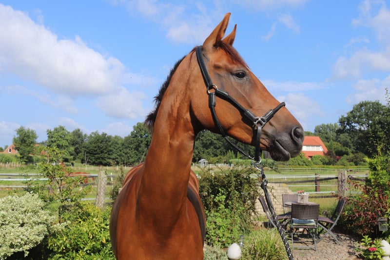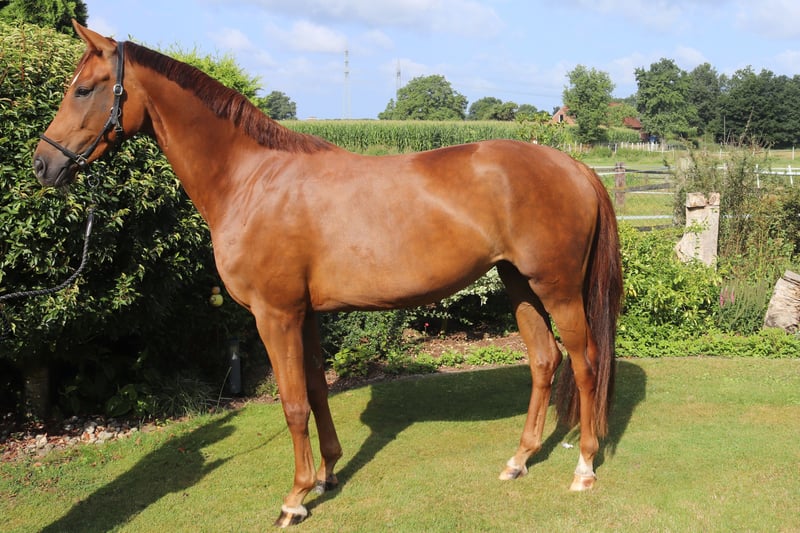 Nous vendons notre jument de notre propre élevage, Sunny, issue de Sir Donnerhall x Belissimo M x Rosenkavalier. Elle est née chez nous et a grandi en troupeau avec une jument du même âge et deux juments plus âgés. Sa mère, la Verb.Pr.St. Bounty, est chez nous et peut être visitée. Sunny est récemment montée, mais en raison de constatations, la jument est sous-évaluée et ne peut être vendue comme cheval de selle (ces constatations ne sont pas d'origine génétique). Par conséquent, elle pourrait également être envisagée comme jument de reproduction. Si vous êtes intéressé, n'hésitez pas à nous contacter par téléphone ou par WhatsApp au 0151-68827188.