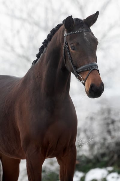 Diese ansprechende Stute vereint eine erstklassige Abstammung mit einem angenehmen Charakter und drei guten Grundgangarten. Sie ist 4 Jahre alt, gesund und röntgenologisch einwandfrei geprüft (inklusive Rücken und Nacken). Unter dem Sattel lässt sie sich angenehm anreiten: leicht an den Hilfen, arbeitssam und gelassen. Auch im Umgang ist sie zuverlässig und brav, wodurch sie sowohl für einen ambitionierten Amateur als auch für einen professionellen Reiter geeignet ist. Eine vielversprechende Stute mit Potenzial für die Zukunft im Dressursport. Weitere Informationen und Video auf Anfrage.
