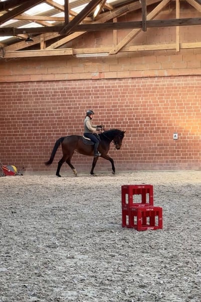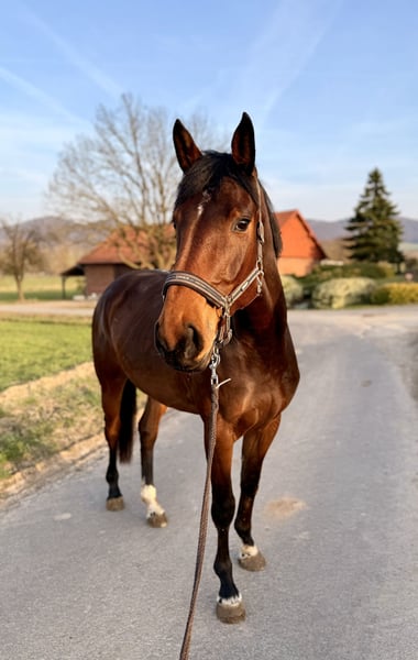 Dorana ist eine vierjährige, ca. 170 cm große Stute mit viel Qualität und sportlichem Potenzial. Sie überzeugt durch ihre guten Grundgangarten, ihre Athletik und ihr Vermögen, beste Voraussetzungen für den Sport oder einen ambitionierten Freizeitbereich. Altersentsprechend befindet sie sich noch in der Entwicklung und möchte weiter gefördert werden. Daher ist sie kein Anfängerpferd und gehört in erfahrene Hände, die ihr die nötige Sicherheit und Ausbildung geben können. Mit klarer, ruhiger Förderung zeigt sie sich lernwillig und entwickelt sich zu einem zuverlässigen Partner. Im täglichen Umgang ist Dorana unkompliziert und brav. Ob beim Schmied, Tierarzt oder im Handling. Dorana ist somit eine spannende Offerte für Reiter, die ein qualitatives Pferd mit Perspektive suchen und Freude daran haben, ein junges Talent weiter auszubilden. Ein Pferdetausch wäre unter Umständen ebenfalls denkbar: Gesucht wird ein erfahrenes, kopfklares und sicheres Pferd (ca. A–L Niveau), das sich gut für eine junge, bereits gut reitende Reiterin eignet. Eine aktuelle AKU ist vorhanden. Bei weiterem Interesse können gerne die Papiere versendet werden.