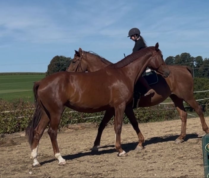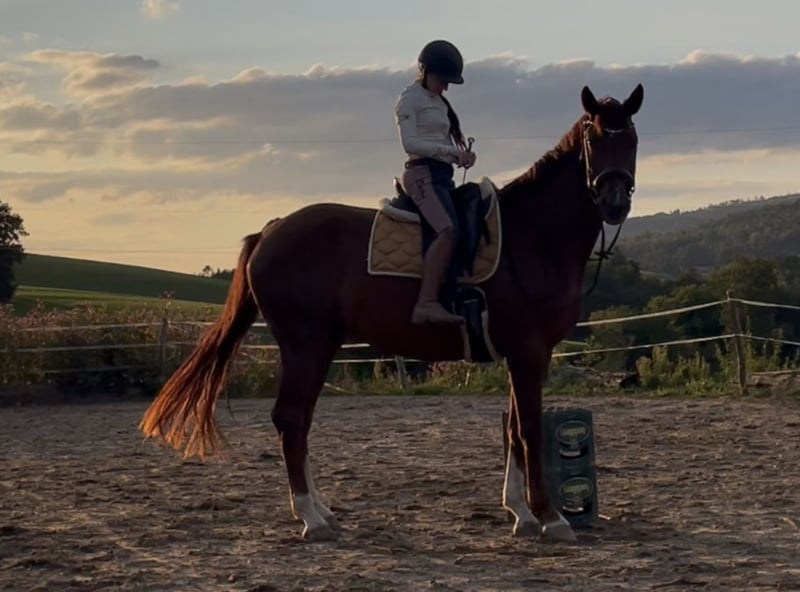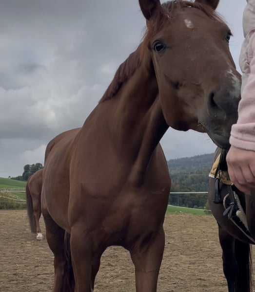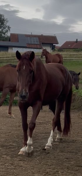 Verkauf oder auch Tausch gegen Dressurpferd 2-9 jährig mit überdurchschnittlicher Bewegung, auch Befunde, Handicaps hypersensibele/schwierige Pferde gerne gesehen! Stute/Wallach/Hengst ab 1,57 Stockmaß bis oben offen. Nur 1:1 Tausch ohne Aufpreis meinerseits Super brave, bewegungsstarke 4-jährige Stute von VitatRex x Don Romanov. Angeritten und schon jetzt niemals aus der Ruhe zu bringen! Leicht zu sitzen und eher der ruhigere Typ, allerdings nicht überaus triebig oder so. Ganz ausgeglichenes und ruhiges Gemüt, in der Herde verträglich und im höheren Mittelfeld vom Rang. Wallache, Stuten alles kein Problem für sie. Sie hat einen kleinen Engstand im Lendenbereich, was rein zufällig 3-jährig beim züchtertüv befundet wurde. Bei mir durfte sie über 1 Jahr lang wachsen und reifen und hat nun alles, was ein toller verlässlicher Freizeitpartner braucht. Auch nach Wochen Pause, kann man einfach lostreten! Sie wird nur abgegeben, da sie einfach eher der gechilltere Typ bleiben wird (ist nicht überaus triebig aber halt auch nicht elektrisch) und da ich mir eher zweiteres erhofft habe, würde ich sie bei einem guten Gefühl meinerseits an jemanden geben, der genau so eine tolle Jungstute sucht. Top Hufe und ganz robust und unkompliziert, natürlich gesund. Ich möchte, dass sie in eine ebenso offene und naturbelassene Haltung bekommt wie bei mir und gebe sie nur in Hände, die sie wertschätzen und nicht ständig auf Turnieren rumreiten! Weitere Infos und Videos gerne auf Anfrage. Nachrichten hier werden nicht beantwortet! 01708293175