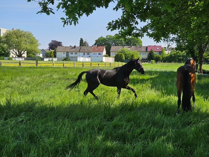 Bieten hier eine wunderschöne Rappstute von Selectric an. Sie hat enorme Bewegungsabläufe ein Pferd das Potenzial für den großen Sport hat. Eine Stute durch und durch testet und brauch eine ruhige konsequente Hand. Nichts für Anfänger. Mit Liebe groß gezogen. Aufgrund eines Befunds weit unter Wert zu verkaufen (genaueres auf Anfrage).Derzeit geht sie mit einem 4 jährigen Wallach zusammen auf die Wiese und wird kultiviert und leicht gearbeitet. Soll in fördernde gute Hände abgegeben werden.