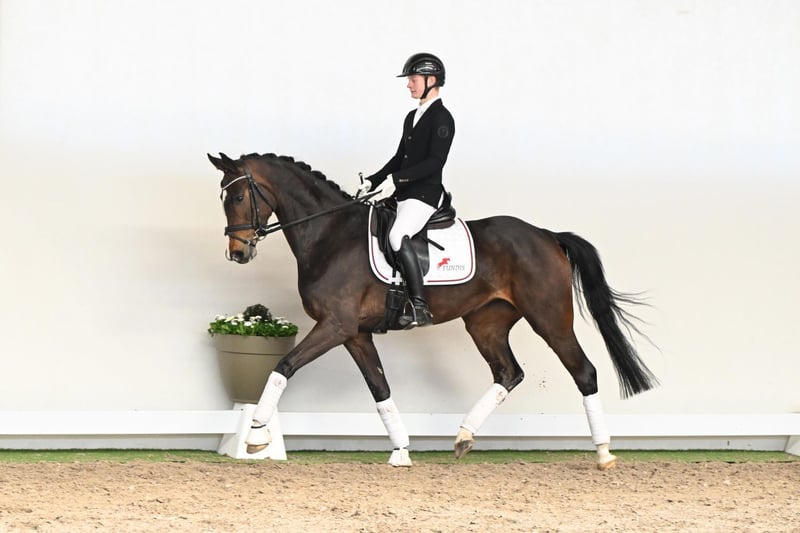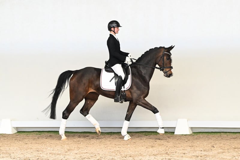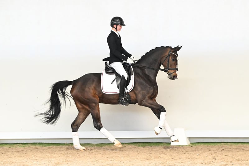 Smilla è una femmina di cinque anni con un cuore d’oro – una cavalla che si impegna sempre a fare la cosa giusta, dotata di intelligenza, temperamento e una naturale disponibilità al lavoro. Attualmente ben avviata, ha avuto tutto il tempo di svilupparsi al suo ritmo e non è ancora stata presentata in pubblico. Una vera cavalla dal cuore grande, sicuramente porterà grande gioia al suo futuro proprietario, non solo in dressage. Il suo stallone di sire è Sir Heinrich (OLD), uno dei più eccezionali stalloni da dressage in Germania. Ha ottenuto un punteggio finale di 8,99 nel suo test di 70 giorni, con un focus particolare sul dressage – il secondo più alto della sua coorte. Medaglia d’argento al Bundeschampionat 2012, vice campione del Bundeschampionat come cinque anni e medaglia d’oro nel Bundeschampionat per cavalle di sei anni nel 2014, testimoniano il suo talento straordinario. Sir Heinrich si distingue anche come stallone, trasmettendo costantemente andature espressive, carisma e un’eccellente maneggevolezza ai suoi figli – qualità che Smilla ha ereditato in modo impressionante. Il suo pedigree è ulteriormente rafforzato da una linea materna Westfaliane collaudata, che garantisce stabilità, desiderio di lavorare e fondamenta ideali per un futuro addestramento. Smilla si presenta come una giovane femmina armoniosa, disponibile e versatile – una cavalla che, grazie al suo carattere, alla maneggevolezza e al pedigree, è destinata a realizzare sogni futuri.