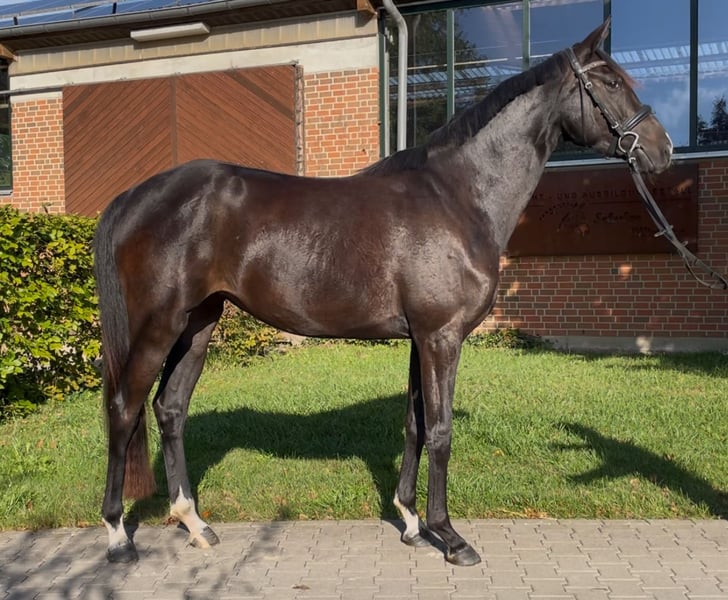 Still at the beginning of her training, this sympathetic 4-year-old mare shows herself to be a top offspring of the renowned sire Felissimo. She was born on our farm and has been gently backed. After receiving a well-deserved break in the pasture, she was slowly reintroduced to sports. Equipped with three outstanding basic gaits, she moves lightly and provides the rider with a fantastic riding experience! In handling and under saddle, she is always uncomplicated and composed. A truly wonderful young horse is maturing here! Have we piqued your interest? Please contact us exclusively by phone; we are happy to answer your questions. Additionally, we have other dressage horses available that may be of interest to you. 001714338810 (Lars Schulze Wierling)