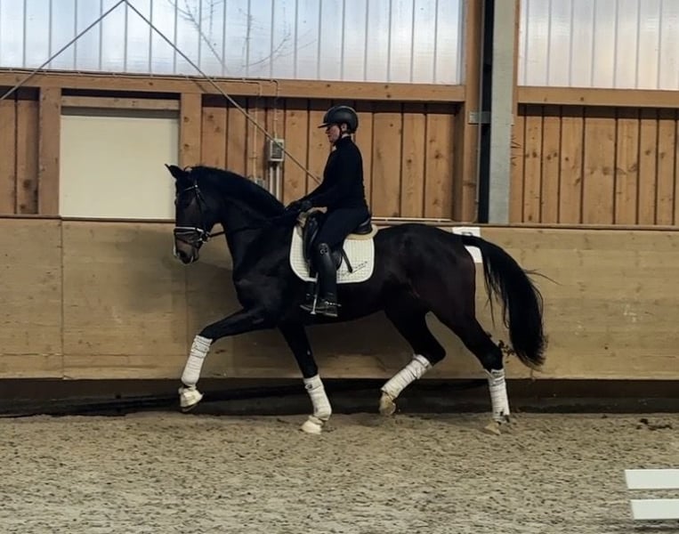 - Age: 5 years - Height: 16.1 hh - Pedigree: Vivat Rex x Heraldik x Weinberg - TÜV: Good, recent X-rays available - Location: Gestüt Schorer, Frankenhofener Str. 3, 86860 Jengen/Weicht The mare has recently been backed and is currently barefoot. She is still green under saddle due to her age but has demonstrated from day one an exceptional honesty, bravery, and willingness to work. Her most notable trait is her sweet, people-oriented character. She is very straightforward in daily handling, friendly, attentive, and highly cooperative. She approaches new situations calmly, remains clear-headed, and completes everything willingly and obediently. It is evident that she enjoys her work and strives to please her handler. Under saddle, she is eager to learn, sensitive, and motivated, even though she is still at the beginning of her training. Her inner calm, honesty, and pleasant temperament make her an ideal partner for ambitious amateurs who value character and long-term potential. In handling, she is completely reliable: ✔ Regularly vaccinated and dewormed ✔ Farrier- and loading-friendly ✔ Currently barefoot ✔ Knows lunging, turnout, and herd life ✔ Familiar with normal stable routines and work ✔ Very social and well compatible with other horses Thanks to her highly interesting pedigree, the mare is not only very attractive for dressage sport but also highly appealing for breeding. At the same time, she is a horse that can clearly be envisioned as a long-term partner both in sport and leisure – a true lifetime horse. Due to her young training level, we are looking for an experienced handler or rider with young horse experience, ideally accompanied by an experienced trainer, to ensure she receives a solid and calm foundation for her future development. A sincere young horse with heart, intelligence, and versatile potential for the future.