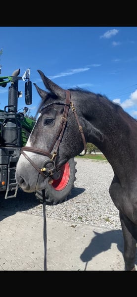 Beautiful and elegant 4-year-old mare by Vingino out of Calido x Grannus. Long-legged, well-built, easy to ride (even for young riders), and always well-behaved and calm, whether in the arena, riding school, unfamiliar surroundings, or on the trail (alone or in a group). Good with the farrier and loading, and stands quietly. A versatile horse suitable for all disciplines, equipped with lovely and comfortable movements. She has already taken her first jumps under saddle and is very well-schooled in dressage for her age. Thanks to her excellent pedigree, she is also suitable for breeding. She is unshod (very good hooves according to the farrier) and is kept in a small herd in an open stable (more subordinate) with mares and geldings, with whom she gets along well and is uncomplicated. Overall, a truly wonderful lady/young horse. Price in line with her quality. Please contact me by phone if interested: 0163608584. Additional note: She recently competed in her first three 105 cm classes, winning all of them.