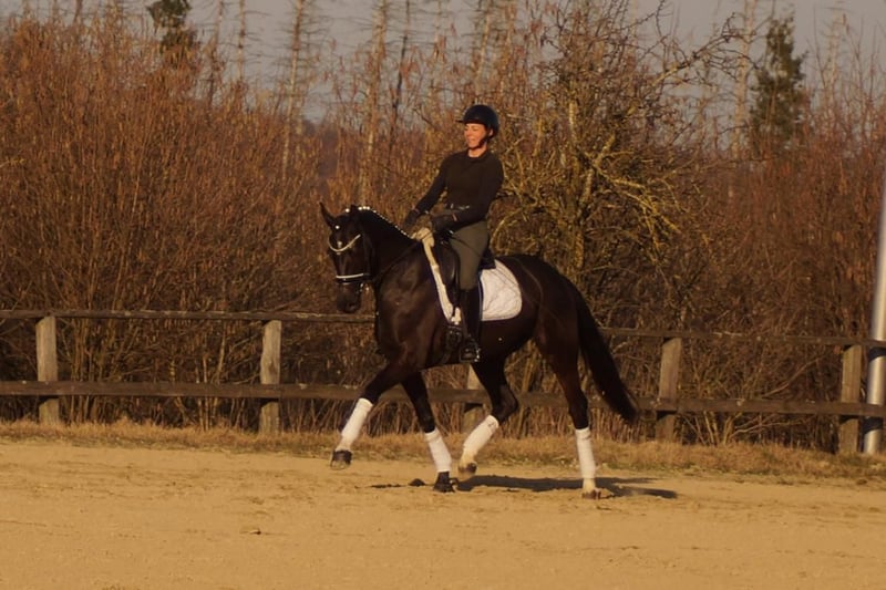 Samira is an elegant mare with a confident and lovable personality. She remains unshaken in any situation, always striving to please and is very easy to handle. She possesses three expressive gaits with great potential, especially her canter, which strongly resembles that of her sire, the Bundeschampion Secret. Through her dam line and the De Niro blood, she has the perfect hindquarter angulation, offering lots of leverage and power development. Her dam line also carries a good dose of blood, making Samira very light on her feet. In addition to her genetics, her nearly perfect conformation naturally enhances her rideability and balance. Overall, Samira would be an ideal horse for a rider transitioning to a more advanced level. Her ease in adjusting the frame and her calmness in forgiving mistakes make her perfect for a rider who enjoys riding with light aids.