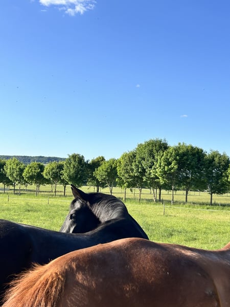 Cerco una nuova famiglia per la mia amazzone Quintana, di 5 anni. L'ho acquistata come cavalla giovane, poiché attualmente possiedo solo il mio pony e desideravo qualcosa di più giovane e leggermente più grande. Purtroppo, ho dovuto constatare che semplicemente non siamo compatibili (è il mio primo cavallo giovane e ha bisogno di qualcuno con più esperienza). Data la sua genealogia, la vedo anche molto adatta alla riproduzione. Ha già avuto un infortunio, che però si è completamente guarito e non le causa alcun problema. Si integra perfettamente nel gruppo di nostra “terza età” (quattro stalloni e due amazzoni). Inoltre, è ferrata e non mostra alcuna paura di trattori, cani o altri stimoli. Per qualsiasi domanda, sono a disposizione.
