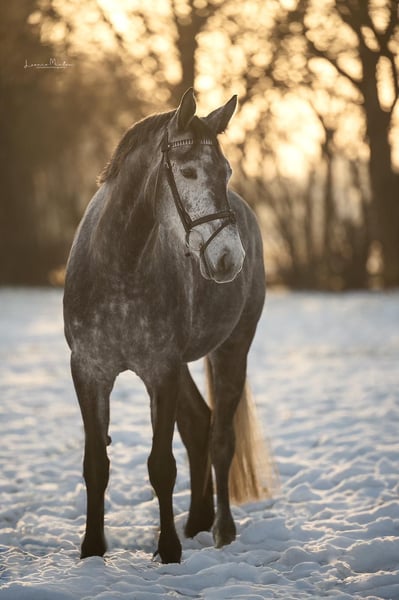 Verkaufe wunderschöne Westfalen Stute – Rappschimmel, geb. 2020 Diese elegante Westfaler Stute überzeugt durch ihre beeindruckende Erscheinung. Mit einem Stockmaß von 168 cm bietet sie die perfekte Größe für ambitionierte Reiterinnen und Reiter, die Wert auf Qualität und Charakter legen. Sie ist eine talentierte Springerin, die bereits viel Potenzial zeigt und sich hervorragend für den Sport eignet. Ihre angenehme Art und ihr ausgeglichenes Wesen machen sie zu einer zuverlässigen Partnerin im Alltag sowie im Turniersport. Die Stute wurde artgerecht aufgezogen und befindet sich in einem guten Trainingszustand. Sie ist gesund, fit und bereit für die nächsten Herausforderungen. Springpferde A gewonnen, Springpferde L platziert. Aktuelle Röntgenbilder liegen ohne Befund vor. Bei Interesse oder Fragen stehe ich Ihnen gerne für weitere Informationen und eine Besichtigung zur Verfügung. Weitere Videos / Infos gerne über WhatsApp unter 015161523331