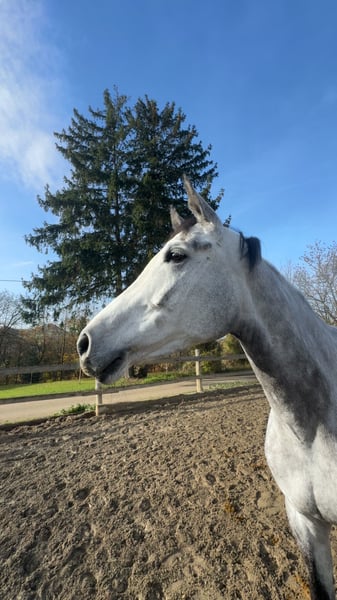 Zum Verkauf steht die 6-jährige Stute Holly, abstammend von Hickstead White x Stalypso. Holly überzeugt mit einem sehr guten Sprungvermögen. Sie wurde bisher nicht auf Turnieren vorgestellt. Im Gelände zeigt sie sich sehr lieb, brav und zuverlässig, ebenso ist sie unkompliziert im täglichen Umgang und verträglich mit anderen Pferden. ⚠️ Wichtiger Hinweis: In der Halle oder auf dem Reitplatz gerät Holly stark unter Stress und beginnt zu steigen. Aus diesem Grund wird sie ausschließlich als Zuchtstute oder als Ausreitpferd verkauft. Für den sportlichen Einsatz auf dem Platz oder im Turniersport ist sie nicht geeignet. Ich habe Holly vor ca. 2 Monaten gekauft, in der Hoffnung, ihr Stressverhalten in der Halle in den Griff zu bekommen. Da mir ihr Wohl sehr am Herzen liegt, wünsche ich mir für sie ein ruhiges, stressfreies Zuhause, in dem sie entsprechend ihrer Bedürfnisse gehalten werden kann Platz vor Preis – nur in gute und passende Hände abzugeben. Bei ernsthaftem Interesse und weiteren Fragen gerne melden.