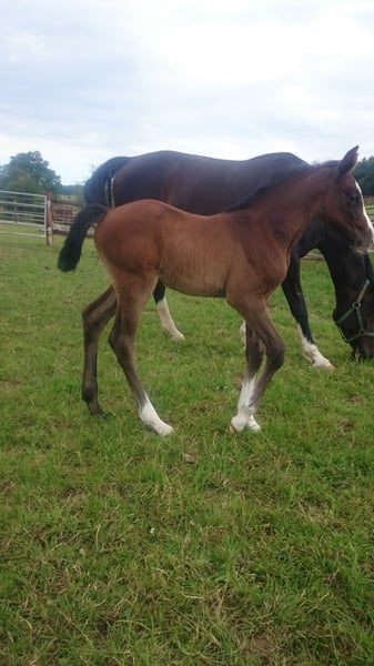 raza puramente Holstein. Muy bien educado y orientado a las personas. Gran medio hermano de la yegua ya ha recogido varias victorias y colocaciones en pruebas para jóvenes saltadores de obstáculos A-M