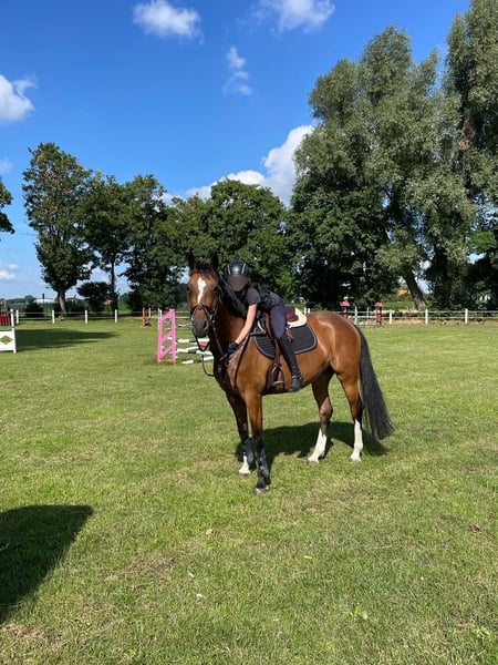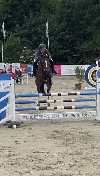 Powerpferd mit Persönlichkeit sucht Lieblingsmensch mit Herz & Humor (Weil Perfektion langweilig ist – und Stuten einfach die besseren Geschichten schreiben.) ✨ Name: Cocona B, Casiro I x Cordobes I Alter: 7 Jahre Stockmaß: 1,62 m Ausbildungsstand: L-Springen platziert, Springtalent mit Köpfchen Typ: Stute. Punkt. (Also ehrlich, mit allem, was dazu gehört – und genau deshalb lieben wir sie.) Über die Dame: Unsere 7-jährige Springperle bringt alles mit, was man sich wünscht – Kraft, Vermögen, Rittigkeit, und ja… auch eine gute Portion Charakter. Sie ist kein Anfängerpferd, kein Kuschler auf Knopfdruck, aber wer sich die Zeit nimmt, sie kennenzulernen, hat ein echtes Einhorn mit Turbo unter dem Sattel. Denn wenn man einmal ihr Mensch ist, liest sie dich wie ein Buch. Arbeitet motiviert mit, kämpft am Sprung wie eine Löwin – und hat das gewisse Etwas, das man nicht kaufen kann, sondern finden muss. Ihre Highlights: * L-Springen platziert mit Luft nach oben * Vorsichtig am Sprung, sehr clever * Klar im Kopf, wach im Blick * Schmiedefromm * Beim Verladen ist sie wieder Stute, mal beim ersten Anlauf mal braucht es 5 min Ruhe * Im täglichen Umgang freundlich und auch verschmust aber eben kein Golden Retriever – eher so „Queen der Stallgasse“ Was wir uns wünschen: Ein Zuhause, das ihre Qualitäten sieht, aber auch mit ihrer Eigenwilligkeit umgehen kann. Jemand, der sie fördert, fordert, aber auch mal Fünfe gerade sein lässt, wenn sie mal „ihren Tag“ hat. Kein Händler, keine Reitschule – sondern ein Platz mit Herz, Verstand und vielleicht einem kleinen Altar mit Möhren. Preis: der Qualität entsprechend – Verhandlung im vernünftigen Rahmen möglich. Im Preis inkl. ist eine detaillierte mündliche Bedienungsanleitung. Standort: Ostercappeln-Schwagstorf Bei Interesse freuen wir uns über eine Nachricht mit ein paar Infos zu Dir – Probereiten nach Absprache möglich (Stutenversteher*innen willkommen!). Kontaktaufnahme per Whats App über 0179/9320430 Sie wurde regelmäßig geimpft und der Osteopatin vorgestellt. Eine AKU mit Röntgenbildern aus 2023 ist vorhanden, ohne Befund. Auf Wunsch und eigenen Kosten kann gerne eine neue gemacht werden. Zubehör wie Sattel, Trense, Vorderzeug, Decken usw. kann separat erworben werden.