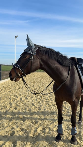 Talented 6-year-old dressage mare by Fürst Samarant x Quasar de Charie – promising young prospect For sale is the 6-year-old, approximately 16.1 hh mare Fräulein Flora, an expressive and movement-rich daughter of Fürst Samarant out of a Quasar de Charie damline. Fräulein Flora presents as a modern, athletic-looking dressage horse with three good basic gaits. She is currently at training level A, with dressage tests in L class being effortlessly worked through. She demonstrates daily a strong willingness to learn and a high level of performance drive. Due to her age and sensitivity, Fräulein Flora is not suitable for beginners, but an excellent choice for ambitious riders seeking a horse with clear potential for advanced dressage competition. She is always friendly in handling, well-behaved in daily routines, shoe- and loading-friendly, and regularly vaccinated and dewormed. The sale is due to personal reasons – not performance or health issues. A video can be provided upon request. Optional accessories are available for an additional fee.