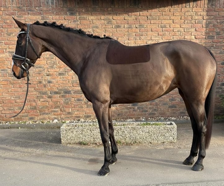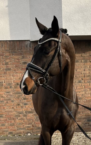 Zarah Leander was trained by an amateur rider and has competed in dressage tests at classes A and L. She is now in professional training and has achieved placements in dressage L. She is familiar with both open stable and box stall management. The mare moves easily on the bit and is comfortable to sit, although she can be somewhat watchful. She is well-behaved but not suitable for beginners. The mare has a current health certificate and no clinical issues were found. X-rays revealed three chips and mild hock cartilage ossification. An insurance covering surgery could be arranged.