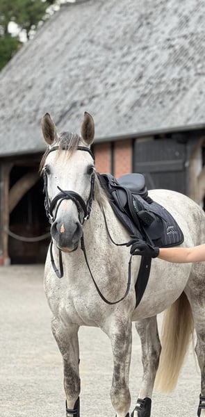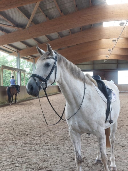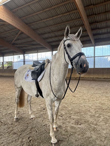 Apfelschimmelstute 7 J. - Quasimodo van de Molendreef x A Conto Son - Temperamentvoll, Arbeitswillig & Springbetont. Zum Verkauf steht eine 7-jährige Apfelschimmelstute mit hervorragender springbetonter Abstammung: Quasimodo van de Molendreef x A Conto Son. Sie vereint Sportlichkeit, Typ und Persönlichkeit auf beeindruckende Weise und ist sowohl für die Zucht als auch sportlich sehr interessant. Die Stute verfügt über drei sehr schöne Grundgangarten, die schwungvoll, ausdrucksstark und raumgreifend sind. Am Sprung zeigt sie viel Vermögen, Technik und Übersicht - Eigenschaften, die sie sowohl als Sportpferd als auch für die Zucht hochattraktiv machen. Im Umgang ist sie lieb, aber gleichzeitig temperamentvoll und charakterstark.