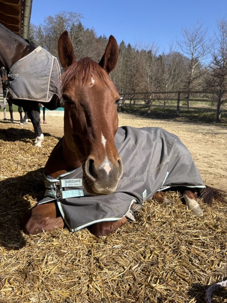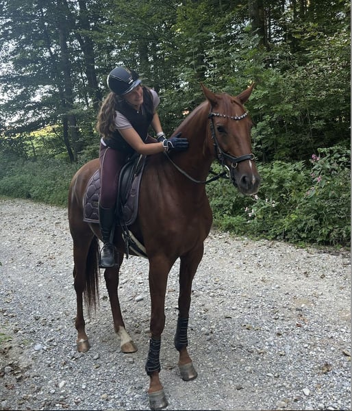 Fortuna has been with me since she was 4 years old and is currently ridden regularly by my trainer in the arena, on the riding field, and in the outdoor environment. She is proficient in walk, trot, canter, and small cavaletti exercises, but is not yet fully trained, making her an unspoiled horse with great potential for development. Due to my lack of time for riding and lessons in the past, I have focused on groundwork training in recent years. Since moving back to Munich – about a year ago – she has been ridden regularly. Fortuna is spirited but very willing to learn, especially when she has a clear, experienced rider by her side. She learns quickly and works with motivation. She enjoys going out in the field – alone or in a group – and remains attentive during these outings. She is familiar with both box stall and open stable management and currently lives in an open stable, where she integrates well into the herd. Her teeth and hooves are regularly maintained. Deciding to sell her is not easy for me. However, I feel she needs to be further supported and developed, which I am currently unable to provide due to my new job. Therefore, I am looking for a knowledgeable rider who enjoys continuing her education and training.
