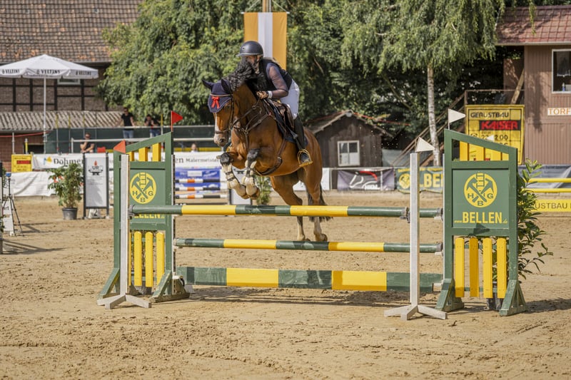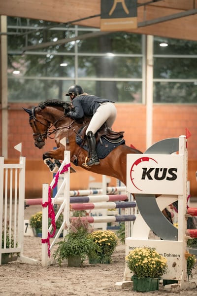 For sale is a stunning and light-footed chestnut mare by Allegro Sun out of a dam with Polytrauma, due to her retirement from show jumping. The nearly nine-year-old mare stands approximately 16.1 hh and impresses with her exceptionally friendly nature and her willingness to perform in the arena. Louisa has achieved placements in A* and A** classes. She is well-behaved in the terrain and is familiar with trailers, transporters, and trucks. She was recently vetted, including a back check, with no findings. Since she has been in my possession, she has never been ill, lame, or experienced any health issues. Currently, she is kept in box stalls with daily turnout on pasture or paddock. A fee of €30 will be charged for pre-ride/test riding, which will be credited towards the purchase price.