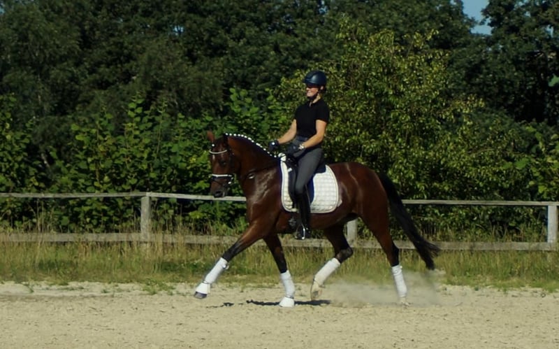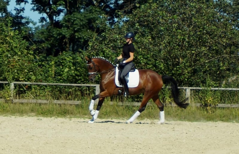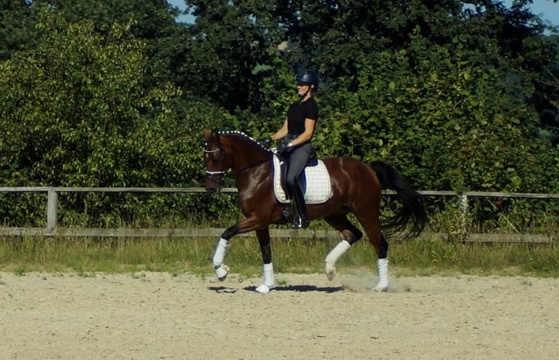 Carrera is a very honest, people-oriented and self-confident princess. When her human walks down the stable aisle, she grumbles discreetly at him. The search for interaction and the will to do everything right are characteristic of her. She is very refined when riding. Here, less is more. She prefers to be ridden from a good basic seat without hand contact and then works with the smallest of aids. In terms of breeding, the Grand Prix horse maker Christ, himself successful in the advanced level, is a double-minded, self-confident stallion with a lovely and double-minded dam line with a very expressive conformation. Let de Lember, who died too young, achieved victories in novice and elementary level dressage tests for young horses, novice to medium level show jumping tests for young horses and was reserve champion in his stallion performance test after qualifying for the Bundeschampionat. All in all, Carrera is a courageous, double-minded horse who always wants to work for his rider. Carrera has been tested and will be part of the first Höll farm auction on September 15th. More information can be found at Pferdesport-hoell.com. Trial rides can be arranged at any time.