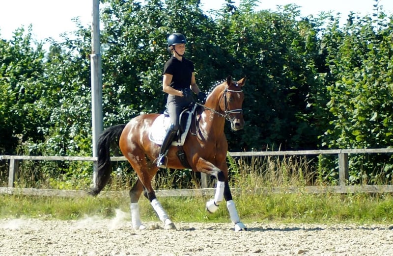 Carrera es una princesa muy honesta, con don de gentes y segura de sí misma. Cuando su humano camina por el pasillo del establo, ella le gruñe discretamente. Se caracteriza por buscar la interacción y querer hacerlo todo bien. Es muy refinada cuando monta. Aquí, menos es más. Prefiere que la monten desde un buen asiento básico sin contacto con las manos y luego trabaja con las ayudas más pequeñas. En cuanto a la cría, el creador de caballos de Gran Premio Christ, que también triunfó en el nivel avanzado, es un semental de doble mentalidad, seguro de sí mismo, con una línea materna encantadora y de doble mentalidad con una conformación muy expresiva. Let de Lember, que murió demasiado pronto, consiguió victorias en pruebas de nivel principiante (A) y elemental (L) para caballos jóvenes de doma clásica, pruebas de nivel principiante (A) a medio (M) para caballos jóvenes de salto y fue subcampeón en su prueba de rendimiento de sementales tras clasificarse para el Bundeschampionat. En general, Carrera es un caballo valiente y de doble ánimo que siempre quiere trabajar para su jinete. Carrera ha sido probado y formará parte de la primera subasta de la granja Höll el 15 de septiembre. Más información en Pferdesport-hoell.com. Se pueden organizar paseos de prueba en cualquier momento.