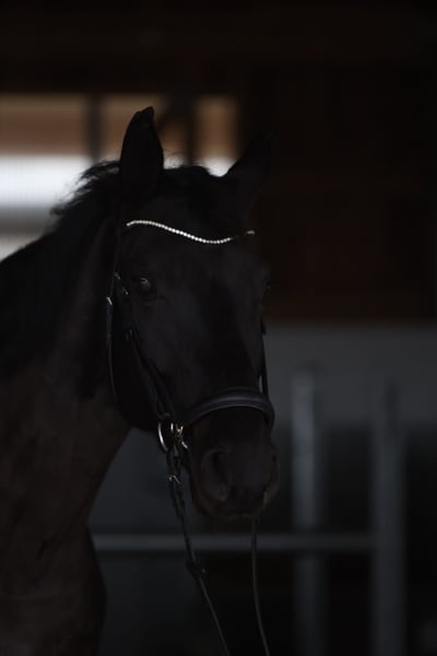 Met pijn in het hart zoeken wij voor onze „Zwarte Parel“ een nieuw liefdevol thuis, omdat de interesses van onze dochter veranderd zijn. Deze mooie zwartbruine Westfaalse/Trakehner merrie werd geboren in maart 2017 en overtuigt door haar aansprekende uitstraling en haar temperament. De dochter van Schwarzgold is voorzichtig onder professionele ruiters opgeleid en heeft zich kunnen plaatsen in dressuurwedstrijden van klasse L. In de zomer van 2023 hebben wij haar direct van de fokker gekocht, waar ze nog steeds op haar erf staat. Haar moeder was succesvol tot en met de zware klasse in de dressuursport. Parel is een brave, gevoelige merrie en beheerst de oefeningen tot en met klasse L. Ze kan oefeningen zoals schouder-in, traversale en halve traversale. Onze dochter rijdt regelmatig dressuurles, maar heeft geen interesse in wedstrijden, waardoor de gemotiveerde merrie de afgelopen twee jaar niet meer op concours is geweest. Sinds haar aankoop wordt ze continu begeleid door een professionele ruiter. Parel gaat heel graag het bos in en is daar betrouwbaar. Ze kent stang- en cavalettiwerk, dubbellongeren en grondwerk. Parel wordt regelmatig gevaccineerd, ontwormd en routinematig door de tandarts gecontroleerd. De laatste controle (07/2023) was zonder bijzonderheden. Parel is gewend aan dagelijks weilandgang en meerdere uren paddocktijd, momenteel samen met twee andere merries. De uitrusting kan bij interesse worden overgenomen, waaronder twee zadels van Passier. Voor meer informatie staan wij graag tot uw beschikking. Contact met de fokker is eveneens mogelijk. Bezichtiging en proefritten kunnen in overleg plaatsvinden. Bij interesse graag via WhatsApp +49 171 1972184, verdere video’s op aanvraag.