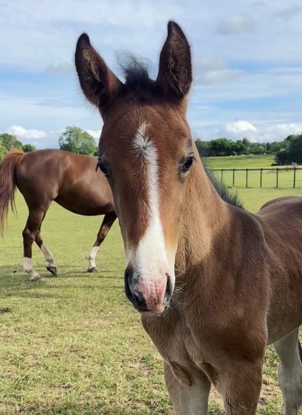 🌟 For Sale at Weaning (9 months) 🌟 Suraya Ellissimo May 2025 Bay Filly By Sezuan Donnerhall × Out of Raving Beauty D (by Rock forever) This striking filly is the complete package—graded Gold with an outstanding 8.8 at the 2025 British Breeding Futurity. She combines top-tier genetics, elegant type, and exceptional movement. Sired by the phenomenal Sezuan Donnerhall, renowned for power, elasticity, and modern frame, and out of the beautifully bred Raving Beauty D (by Rockafella, from the influential Florestan line). The dam line brings proven rideability, elegance, and correctness. Suraya Ellissimo is bred for the big arena and is already showing an uphill frame, light-footed gaits, and an inquisitive, trainable mind. This filly is already showing everything needed for top-level dressage: ⭐ Gold Futurity 8.8 – athletic, elastic, and powerful ⭐️Modern, refined type with correct limbs and frame. ⭐️Confident temperament and bold attitude, takes everything in her stride. ⭐️Attended shows and event venues ⭐️Regular handling, farrier, worming, passport, microchipped & start up vaccinations. Has been around heavy machinery, fully clipped (no sedation required) , loads and travels well. ⭐️For sale at weaning (9 months of age) A serious prospect for Dressage / Jumping or young horse classes, with the potential to develop into a high-level partner. 📩 Enquiries welcome to serious homes only