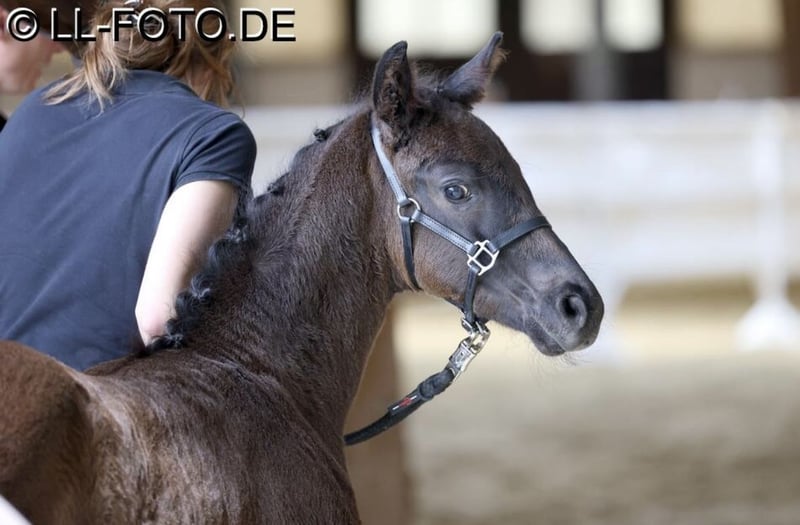 Prachtig veulenvrouwtje uit een sportief succesvolle moederlijn. Correct gebouwd, ongelooflijk typerend en zeer energiek in beweging. Video's op aanvraag! De moeder is een halfzus van Voile Rouge (succesvol onder Isabel Freese in Inter I). Uit de tweede moeder, Rhapsodie, komen de PSG/Inter succesvolle Weltrose v. Weltmeyer en de deelnemer aan het Bundeschampionat Venezia 73, die in 2014 voor 200.000 euro van eigenaar wisselde via de Westfälische Elite Auktion. Meer gekeurde hengsten uit de afstammingslijn van de moeder. https://horsetelex.de/horses/pedigree/1797778/voile-rouge