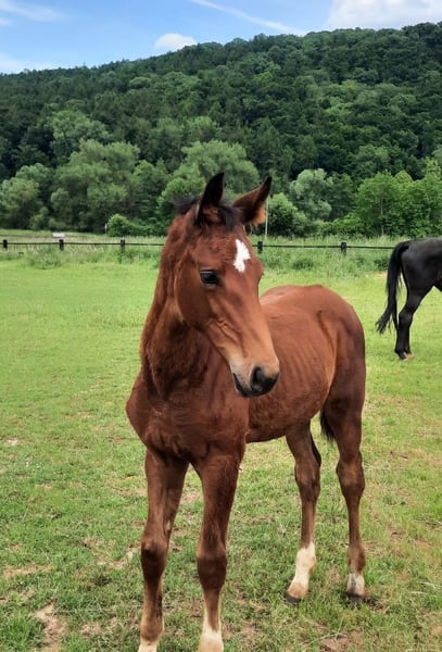 Wir verkaufen unser sportliches, braunes Stutfohlen, geboren am 03.03.2025, von Viva Vitalis x Rational. Als Tochter des Bundeschampion 2025 sticht sie mit sehr guten GGA und einem harmonischen Körperbau heraus. Ihre Mutter, eine V.Pr.St., vererbte neben ihrem großen Rahmen und ihrer Korrektheit auch das besondere Etwas. Sie ist weiterhin sehr lieb und total menschenbezogen. Bei Interesse melden Sie sich gerne direkt telefonisch bei meinem Mann: 0179 4878177 (Stefan Faupel) Ein Video kann auch versendet werden.