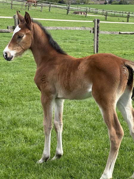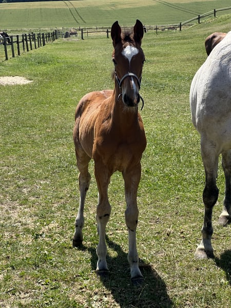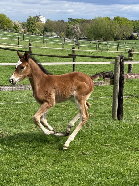 Typy filly with top movements from loving upbringing with absolutely top pedigree. The filly is from the first foal crop of the Tangelo van de Zuuthoeve son, Tangelo's Kunterbunt, licensed in 2023 in Westphalia. The foal is sold directly by the breeder.