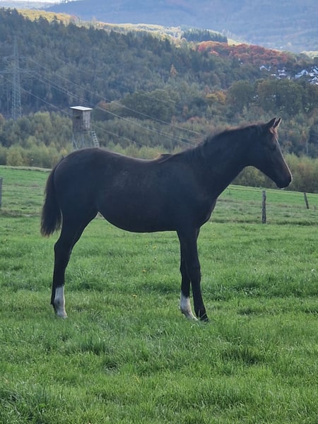 Zu Verkauf biete ich ein besonderes Stutfohlen von Danesto (Landgestüt Warendorf) an. Die Mutter stammt aus der bewährten Linie Freddie Mercury x Acord II, was eine ausgezeichnete Abstammung und viel Potenzial für Sport und Zucht garantiert. Devine ist am 10.05.2025 geboren Besonders sticht sie durch, ihre sehr menschenbezogen und neugierig, dabei aber auch ruhig und gelassen Art heraus– ein echtes Kuscheltalent. Aufgewachsen ist sie in einer gemischten Herde mit Fohlen und älteren Pferden und hat früh den Umgang mit Hunden, Kühen und Hühnern gelernt. Dadurch ist sie bestens sozialisiert und ideal vorbereitet für ihre weitere Entwicklung. Videos und weitere Bilder von der Bewegung können auf Anfrage gerne zugesendet werden. Transport innerhalb Deutschlands ist problemlos möglich. Bei ernsthaftem Interesse freue ich mich auf Ihre Nachrichten.