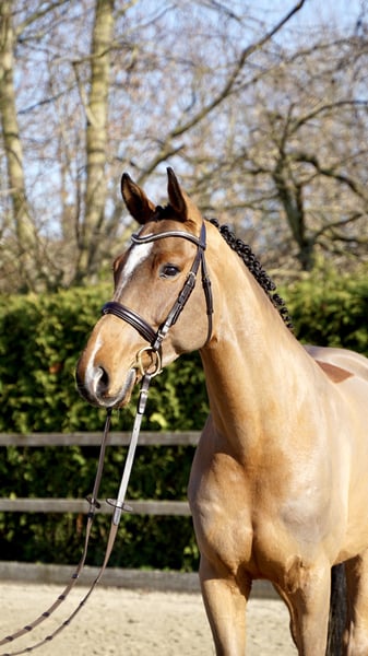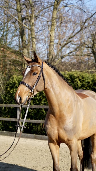 À vendre, un joli hongre de 7 ans. Willi a déjà réussi à se classer en classe M en saut d'obstacles. Il a également obtenu de bons résultats en compétition avec un amateur. Il saute avec beaucoup d'aisance, de courage et de prudence. Dans son comportement quotidien, il impressionne par sa douceur et son attitude de travail positive. Il est également très facile à gérer au quotidien. Que ce soit pour le bridon, la promenade, le travail à la longe ou le chargement, il reste toujours calme et détendu. Nous pouvons envisager Willi aussi bien comme cheval pour un professionnel que comme cheval de relève pour un amateur en devenir. Les radiographies sans anomalies sont disponibles. Pour plus d'informations, n'hésitez pas à nous contacter au 0172 3241632.