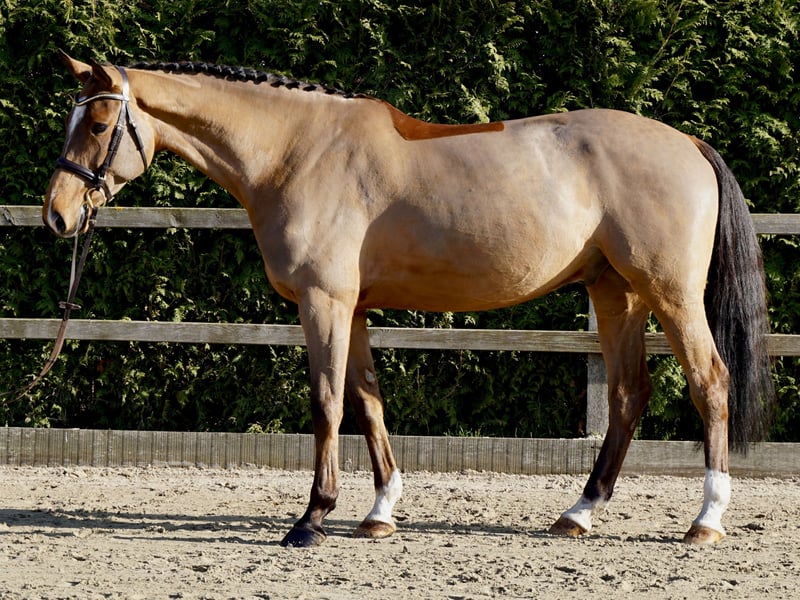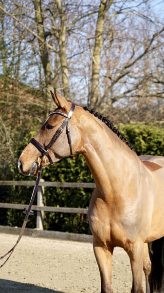 For sale is a stylish 7-year-old gelding. Willi has already achieved placements up to jumping horse class M. He has also been successful in competitions with an amateur rider. He jumps with great overview, ability, and caution. In daily handling, he impresses with his rideability and positive work attitude. He is also very straightforward in his manner. Whether tacking up, hacking out, loading, or traveling, he remains consistently calm and relaxed. We can see Willi either as a professional’s mount or as a promising young amateur horse. X-rays are available with no findings. For more information, please contact 0172 3241632.