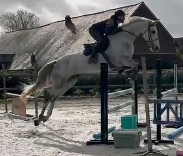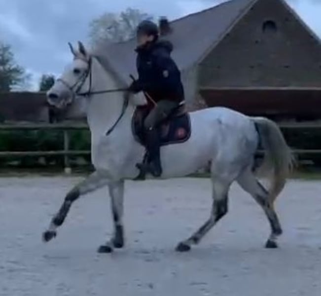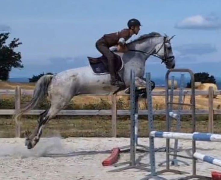 Castel de St Jean Z 11-year-old gray gelding, 1.68 m, with a good pedigree. Very gentle and respectful on foot and under saddle. Suitable for a professional or an experienced amateur in show jumping, with solid scope (minimum 140 cm). Shows a bit of character over the fences. Born at home, but does not get along with the current rider. Has performed very well in 5- and 6-year-old show jumping classics. Never competed in dressage, but has magnificent gaits that would allow an amateur level 1 rider, even with a young or intermediate rider. Videos available online by searching his name. ORIGINS: - Sire: Castelino van de Helle, Holsteiner (by Cassini I) - Dam: Kabyl des Cresles, Selle Français (by Concorde x Verdi), line of Diamant de Semilly. Located near Dijon. For more information, please contact by phone.