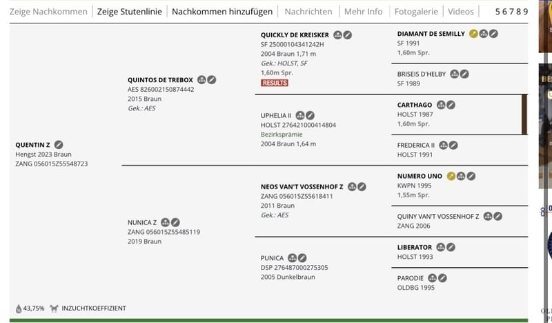 Alter: 3 Jahre Größe: aktuell ca. 158 cm Geschlecht: Wallach Haltung: Offenstall in gemischter Herde Eingetragener Zangersheider Abstammung: Quintos de Trebox (Quickly de Kreisker x Carthago Z) x Neos van‘t Vossenhof Z x Liberator Ausbildung: altersentsprechend gefördert, bisher nicht angeritten Seit er abgesetzt ist, bei uns! ⸻ ⭐ Beschreibung Dieser vielversprechende junge Wallach bringt alles mit, was man sich für die Zukunft wünscht: eine tolle Springabstammung, ein klarer Kopf und eine sehr solide Grundausbildung. Er wächst im Offenstall in einer gemischten Herde auf – bestens sozialisiert, robust und ausgeglichen auf Grund seiner Herkunft aus der Thüringeti. Er zeigt bereits jetzt eine gute Körperkontrolle, viel Ballance und eine angenehme Mitarbeit. Für eine weitere Förderung im Sport oder ambitionierten Freizeitbereich ist er absolut geeignet. Wer Qualität sucht, ist hier genau richtig. ⸻ Besondere Merkmale • korrekt gebaut • freundlich, neugierig, klar im Kopf • gute Grundgangarten • super Entwicklungspotenzial fürs Springen • sozialverträglich und unkompliziert im Umgang