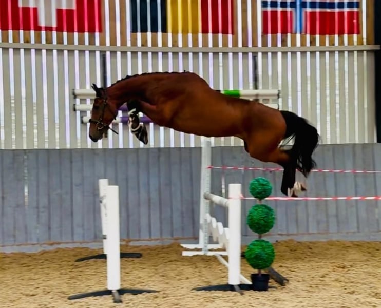 Toekomstige Grand Prix-springer – Hot Rod Waldstar Z Hot Rod Waldstar Z is een prachtige ruin met indrukwekkende bloedlijnen. Hij is een zoon van Hardrock Z, die succesvol heeft gesprongen tot 1.60 m en heeft deelgenomen aan zowel de Olympische Spelen als de Wereldruiterspelen. Zijn moeder is Pourquo Pas van ’t Meulenhof (Gemini CL xx), volle zus van het 1.55 m Grand Prix-paard Private Dancer van ’t Meulenhof, gereden door Giavanna Rinaldi (USA) en Piergiorgio Bucci (ITA). Grootmoeder Darcotique v ’t Meulenhof (Marius Claudius) sprong parcoursen op 1.50 m-niveau met Marjan De Wachter (BEL) en gaat via Narcotique de Muze IV (1.50 m) terug op de Wereldbeker-merrie Qerly Chin (1.60 m). Darcotique bracht zeven internationale springpaarden voort, waaronder Makelele van ’t Meulenhof (1.45 m met Perrine Bignon, FRA). Daarnaast is zij een halfzus van de goedgekeurde hengsten Jenson van ’t Meulenhof (1.70 m GP), Iron Man van ’t Meulenhof (1.40 m) en Denzel van ’t Meulenhof (1.30 m). Hot Rod is, net als zijn vader, dynamisch en krachtig, met veel vermogen en energie. Hij is een paard met bloed en kan tevens zeer geschikt zijn voor de eventingsport. Hot Rod is licht in de hand, heeft een zeer gebalanceerde galop met echte kracht en een grote pas, en heeft zich bewezen als uitzonderlijk moedig en voorzichtig. Dit paard heeft alles in zich om een grote toekomst in de sport tegemoet te gaan. Een topbelofte voor alle 5-jarige jongepaardenrubrieken volgend jaar, ideaal om in Spanje of Portugal uit te brengen en te winnen. Volledige historie rechtstreeks van de fokkers; een zeer fijn paard dat correct is opgeleid en gestart.