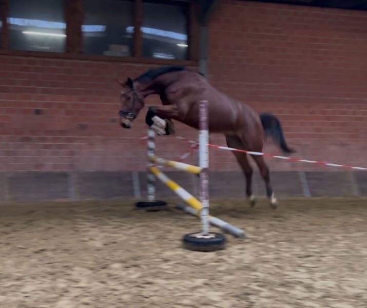 Denver is currently 1.76 meters tall (and he is still growing). He is a Zangersheide gelding sired by Don VHP Z N.O.P., with lines from Diamant de Semilly, Le Tôt de Semilly / Be Hooney Moon, Freestyle VD Wolfsakker, and Querlybet Hero. We can gladly send his detailed pedigree via WhatsApp. Denver is a horse with great potential for show jumping. With the right training, he can reach higher levels of competition. He is still quite green and has room to develop. :-) He is already familiar with lunging, and a rider has sat on him three times—he was very calm and well-behaved during these sessions. If desired, we can also start riding him under saddle, which is no problem. Despite his size, he is incredibly well-behaved. Truly remarkable. A current, thorough veterinary exam is available. If you're interested in videos, please contact us directly via WhatsApp at 0177/2721831. For more information, we look forward to your call. :-)