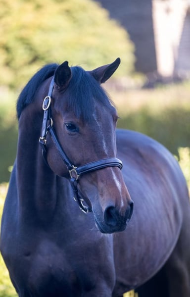 Ce joli hongre de 4 ans, de robe baie foncée, est un cheval de sport moderne, bien construit, avec une conformation correcte et équilibrée. Mesurant environ 1,60 m, il est inscrit au stud-book Zangersheide et possède un pedigree de performance éprouvé. Il est par Calvino Z (Calvin Z × Easanette), un étalon réputé pour produire des chevaux athlétiques, maniables, dotés de scope et d'une bonne technique. Côté maternel, il descend d’une jument par Gino H, elle-même issue de lignées comprenant Leuthen, Landgraf I et Electro, apportant ainsi du sang de saut éprouvé, de la solidité et de la facilité de dressage. Le cheval a récemment commencé le travail monté et fait preuve d’une attitude volontaire et coopérative. Il est simple, apprend rapidement et reste calme et bien élevé, tant à l’écurie qu’en selle. Son tempérament en fait un bon candidat pour un développement ultérieur par un cavalier professionnel ou un amateur ambitieux. L’examen vétérinaire, comprenant une inspection clinique et des radiographies, ne révèle aucune anomalie significative. Le cheval est considéré comme présentant un risque médical normal.