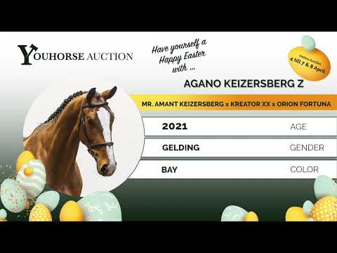 Agano is een braaf en fijn te rijden paard met fijn bloed en een goede instelling. Hij is nog groen, maar leert snel en laat zich simpel rijden. Hij heeft ervaring op 1.10m niveau. Hij is lichtvoetig, heeft een makkelijke galop en is goed naar boven gebouwd met veel front, wat hem comfortabel maakt in het rijden. Op de sprong toont hij een goede techniek, vermogen en doet hij alles met veel gemak. Een paard dat de ruiter een goed gevoel geeft en met zijn instelling veel vertrouwen biedt. Hij heeft nog weinig ervaring, maar laat zien dat hij alles makkelijk oppakt en zich snel ontwikkelt. Een ideaal paard voor de amateur of semi-prof die een paard zoekt met potentie om door te groeien naar een hoger niveau. Vader Mr. Amant Keizersberg springt op 1.30m niveau en is een zoon van Aganix du Seigneur (1.60m), die bekend staat om het doorgeven van vermogen en instelling. Moeder Anoulavsca Fortuna is een dochter van Kreator xx en komt uit een zeer sterke en bewezen sportstam. De moederlijn is bijzonder sterk en brengt meerdere internationale springpaarden en goedgekeurde hengsten: Brighton Bay (1.50m) Kordon VDL (1.50m, goedgekeurde hengst) Immer Fortuna (1.50m) ZelloBee (1.55m) Entertainer (1.60m, goedgekeurde hengst) Bulavsco (1.60m) Queen Jane (1.60m) Nilavsco Keizersberg (1.45m) meerdere paarden op 1.40m–1.50m niveau Een stam met uitzonderlijke prestaties en bewezen vermogen.