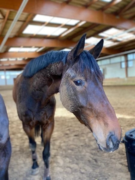 Hermano de 4 años, de color bayo oscuro, con una altura de 1,70 m, hijo de un descendiente de Comme il Faut (Cornet Obolensky) x Heartbreaker y de Kavinia (Numero Uno), una de las mejores líneas KWPN en salto ecuestre. Recientemente iniciado en la doma: trabaja en las tres aires y salta montado. Muy voluntarioso y apto para amateurs, posee un instinto innato para las barras, está hecho para ello y tiene un excelente paso de cadera. ¡Potencial mínimo de 135 a largo plazo! Flexibilidad, estilo, equilibrio y muy elegante, con aires excepcionales. Sale a pasear en exteriores (acompañado por el momento) y no le asustan nada.